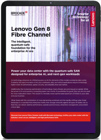 In this Lenovo Gen 8 Fibre Channel guide, discover how Lenovo – powered by Brocade technology – delivers quantum-safe security, 128G performance, and embedded SAN AI to protect critical data, maximize uptime, and simplify operations.